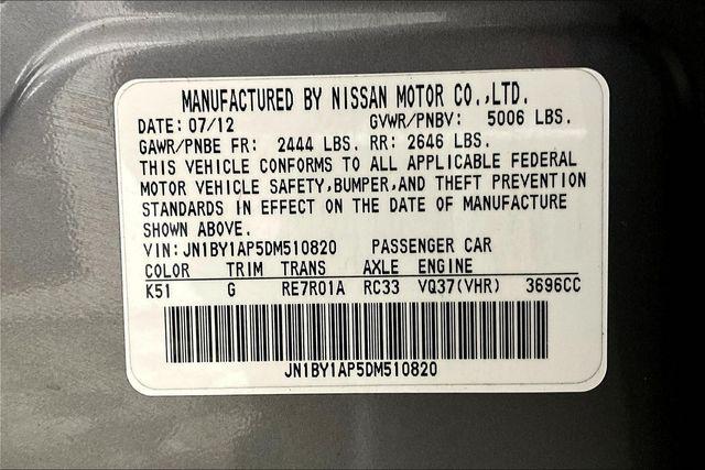 CARFAX One-Owner. Platinum Graphite 2013 INFINITI M37 RWD 7-Speed Automatic 3.7L V6 DOHC 24V VVELHomer Skelton is committed to meeting your automotive needs with speed flexibility and friendly customer service. Odometer is 42542 miles below market average! 18/26 City/Highway MPGPremium Package (Bose 2-Channel Premium Audio System w/10 Speakers Climate-Controlled Front Seats Heated Steering Wheel INFINITI Connection Telematics System INFINITI Voice Recognition Radio: INFINITI Hard Drive Navigation System and Rear Sonar System) 18"" Aluminum Alloy Wheels 4-Wheel Disc Brakes 6 Speakers ABS brakes Air Conditioning Alloy wheels AM/FM radio: SiriusXM Anti-whiplash front head restraints Audio memory Auto tilt-away steering wheel Auto-dimming door mirrors Auto-dimming Rear-View mirror Automatic temperature control Brake assist Bumpers: body-color Carpeted Trunk Mat/Cargo Net & First Aid Kit CD player Delay-off headlights Driver door bin Driver vanity mirror Dual front impact airbags Dual front side impact airbags Electronic Stability Control Exterior Parking Camera Rear Four wheel independent suspension Front anti-roll bar Front Bucket Seats Front Center Armrest w/Storage Front dual zone A/C Front fog lights Front reading lights Fully automatic headlights Garage door transmitter: HomeLink Genuine wood console insert Genuine wood dashboard insert Genuine wood door panel insert Heated door mirrors Heated Front Bucket Seats Heated front seats High intensity discharge headlights: Bi-Xenon Illuminated entry Illuminated Kick Plates Leather Shift Knob Leather steering wheel Leather-Appointed Seat Trim Low tire pressure warning Memory seat Occupant sensing airbag Outside temperature display Overhead airbag Overhead console Panic alarm Passenger door bin Passenger vanity mirror Power door mirrors Power driver seat Power moonroof Power passenger seat Power steering Power windows Radio data system Radio: AM/FM/CD/MP3 Playback Capability Rain sensing wipers Rear anti-roll bar Rear reading lights Rear seat center armrest Rear window defroster Remote keyless entry Security system Speed control Speed-sensing steering Splash Guards Steering wheel memory Steering wheel mounted audio controls Tachometer Telescoping steering wheel Tilt steering wheel Traction control Trip computer and Variably intermittent wipers.
