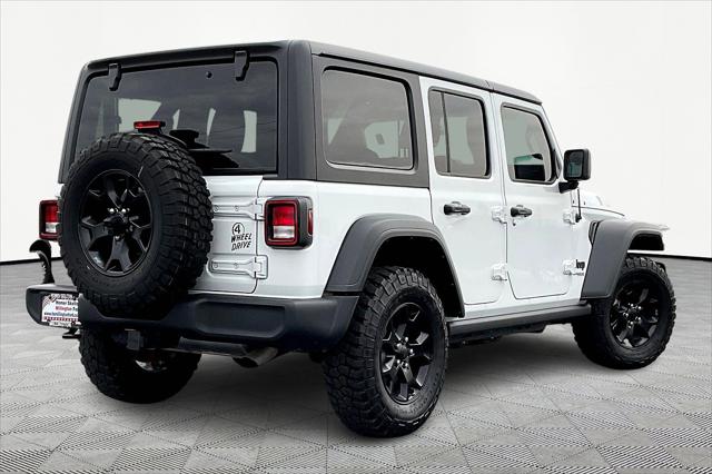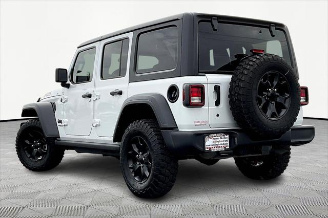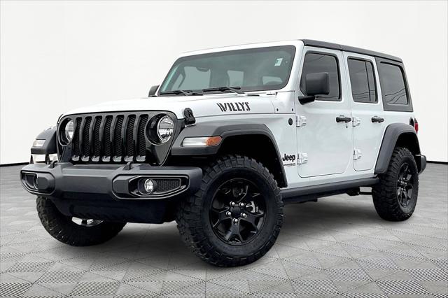 Clean CARFAX. Bright White Clearcoat 2021 Jeep Wrangler Unlimited Willys 4WD 8-Speed Automatic 3.6L V6 24V VVT **CLEAN VEHICLE HISTORY REPORT**.<br><br>Recent Arrival! Odometer is 15034 miles below market average!<br><br><br>Call Me! Call Me! Call Me! This vehicle is at the Millington Ford store located 4 Miles North of Highway 385 in Millington on the right if you are coming from Memphis past walmart. If coming from Tipton County we are a mile after you pass the firework stands on the left...