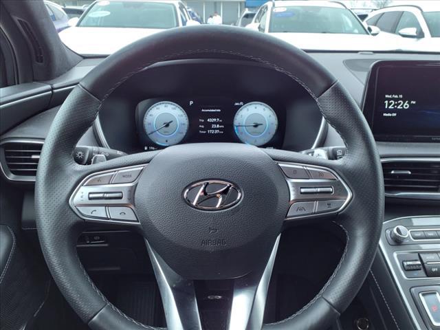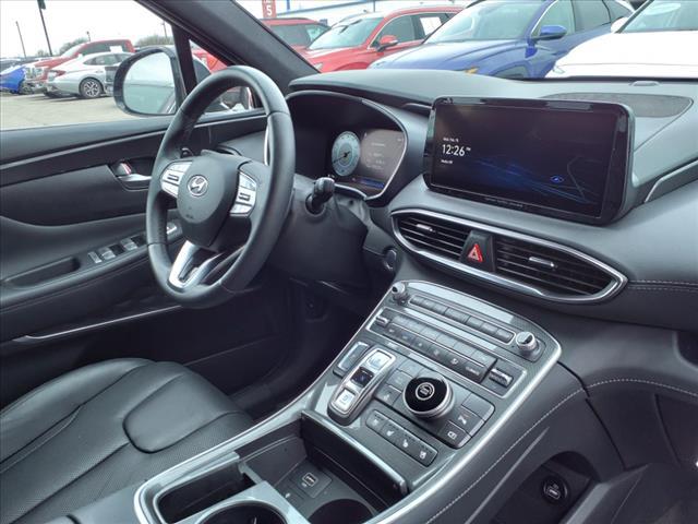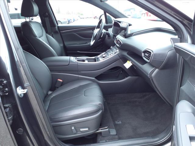 Certified. Portofino Gray 2023 Hyundai Santa Fe Calligraphy FWD Shiftronic 2.5L I4Homer Skelton is committed to meeting your automotive needs with speed flexibility and friendly customer service. 22/28 City/Highway MPGHyundai Certified Pre-Owned Details: * Powertrain Limited Warranty: 120 Month/100 000 Mile (whichever comes first) from original in-service date * Warranty Deductible: $50 * 173+ Point Inspection * Includes 10-year/Unlimited mileage Roadside Assistance with Rental Car and Trip Interruption Reimbursement; Please see dealers for specific vehicle eligibility requirements. 10-Year/100 000 Mile Hybrid/EV Battery Warranty. 3 months Siru-iusXM trial subscription * Vehicle History * Limited Warranty: 60 Month/60 000 Mile (whichever comes first) from original in-service date * Roadside AssistanceOption Group 01 Hyundai Certified Pre-Owned Certified Black Leather 12 Speakers 4-Wheel Disc Brakes ABS brakes Air Conditioning Alloy wheels AM/FM radio: SiriusXM Apple CarPlay & Android Auto Auto High-beam Headlights Auto-dimming Rear-View mirror Automatic temperature control Axle Ratio: 3.316 Brake assist Bumper Applique Bumpers: body-color Cargo Cover/Screen Cargo Net Cargo Tray Carpeted Floor Mats Delay-off headlights Driver door bin Driver vanity mirror Dual front impact airbags Dual front side impact airbags Electronic Stability Control Emergency communication system First Aid Kit Four wheel independent suspension Front anti-roll bar Front Bucket Seats Front Center Armrest Front dual zone A/C Front reading lights Fully automatic headlights Garage door transmitter: HomeLink harman/kardon Speakers Heads-Up Display Heated & Ventilated Front Bucket Seats Heated door mirrors Heated front seats Heated rear seats Heated steering wheel Illuminated entry Leather steering wheel Low tire pressure warning Memory seat Navigation System Occupant sensing airbag Outside temperature display Overhead airbag Overhead console Panic alarm Passenger door bin Passenger vanity mirror Power door mirrors Power driver seat Power Liftgate Power moonroof Power passenger seat Power steering Power windows Quilted Premium Nappa Leather Seat Trim Radio: AM/FM Harman Kardon Display Audio Rain sensing wipers Rear anti-roll bar Rear seat center armrest Rear window defroster Rear window wiper Remote keyless entry Roof rack: rails only Security system Speed control Speed-sensing steering Split folding rear seat Spoiler Steering wheel mounted audio controls Tachometer Telescoping steering wheel Tilt steering wheel Traction control Trip computer Turn signal indicator mirrors Variably intermittent wipers Ventilated front seats and Wheels: 20"" x 8.0J Alloy.